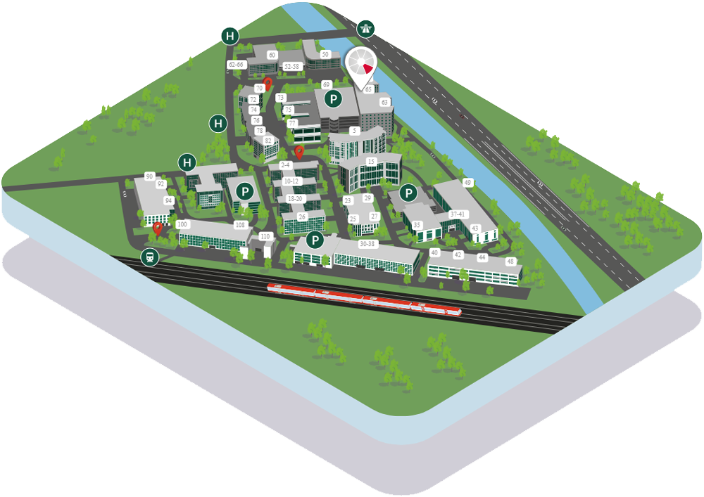 Parking garage No. 1 is located directly adjacent to the qSkills™ building at Südwestpark 65. When arriving via Willstätterstraße and Südwestpark street (opposite Fitness Center), you will find sufficient vehicle parking spaces as well as electric charging stations.